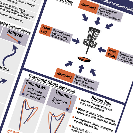 As a new disc golf player I always seemed to forget the trajectories and all types of throws. This pocket guide helps to quickly check which type of throw I should do in each situation.