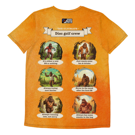 Athletic Disc Golf Shirt - "Sasquatch Crew Orange" design