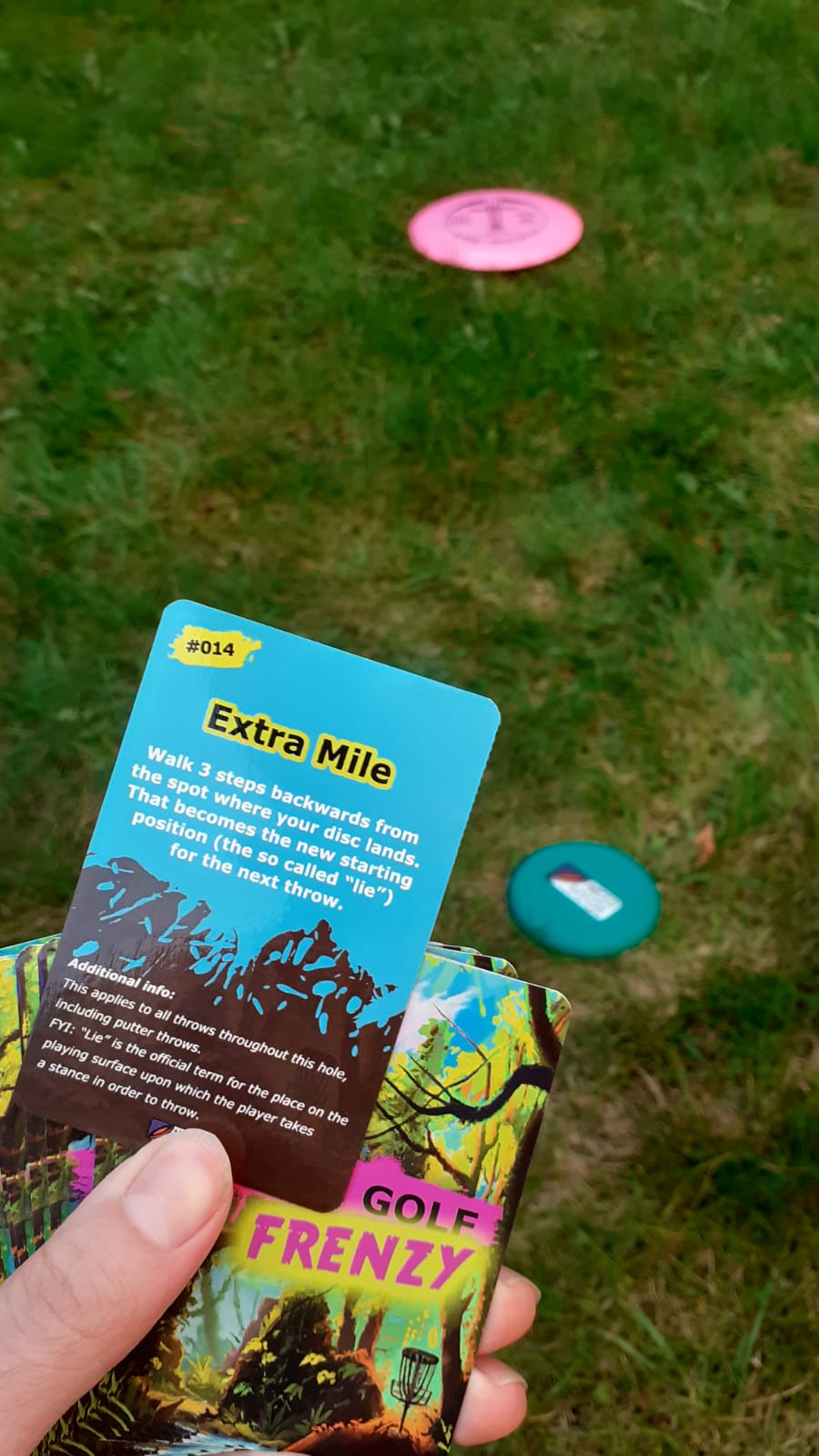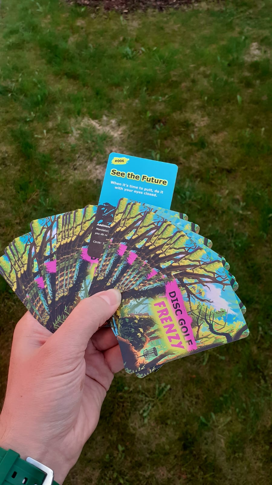 If you wonder if there are any additional challenge types hidden in the Disc Golf Frenzy card game, you will be delighted to find out that there is also a rather chaotic type of challenges. Made for the exact reason – causing a bit of chaos.